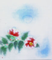 今回は薔薇や椿、風景等を出品。風景作品にはお子さんの存在が大きく影響しているとか。また新たに「群青と朱の調和」に挑戦され、「響き合いから生まれる活力のようなもの」を大切に取り組まれたそうです。