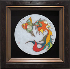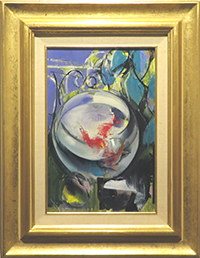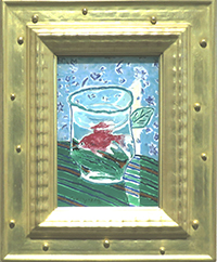 坂口紀良  卓上の金魚 SMガラス絵