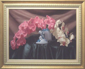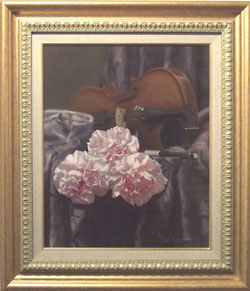 和田直樹個展 2025 8/26 和田直樹個展 2007年11月19日(月)~11月29日(木) 作家紹介 華の旋律 P50 (116.7×80.3cm) 囁き M20 (72.7×50.0cm) 花の旋律 (31.8×82.0cm) 和音 8F (45.5×37.9cm) 午後の静物 S4 (33.4×33.4cm) 精緻な描写で観る人を魅了する和田直樹さん。弊廊にて2年ぶりの個展となります。今回は花をメインに、花と楽器を組み合わせた作品を多く出品されています。花の配列で和音や楽譜を暗に表現し、楽器と組み合わせることで視覚的にメロディを感じてもらいたい、とお話し頂きました。奏でる音楽が楽譜の上を流れていく。咲き誇る花がやがて盛りを過ぎていく。そんな、変わりゆくからこそ美しい「時の流れ」を、画面に閉じ込めた一瞬から感じて頂けたらと存じます。