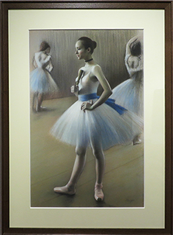 大谷郁代展-描きながら考える- 2025 8/01 大谷郁代展 ―パステル・描きながら考える― ―パステル・描きながら考える― 2018年11月6日(火)-16日(金) 忘却と実在 30M 机上の幸福論 15M 夢みたいな光 12F Teenager 10F 輪廻 8P Psyche―生命― 8F Happiness 6S 音のない音 6M ゲージの鳥 6P Odette 4F 一口の幸せ 4F 靴紐を結ぶ踊り子 (※ドガ・オマージュ作品) ≪腰かけた踊り子≫より 6F 扇子を持つ踊り子 (※ドガ・オマージュ作品) 《舞台稽古をする踊り子》より(1878年頃) 63x40㎝ 色彩のバレリーナ (※ドガ・オマージュ作品) 《踊り子たち、ピンクとグリーン》より(1894年) 62x47.5㎝ パステルと踊り子たち (※ドガ・オマージュ作品) 47.5x62㎝ 踊り子(※ドガ・オマージュ作品) 39x30cm 《アムールとプシュケー、子どもたち》 (1889年)ウィリアム・アドルフ・ブグロー 模写作品 《ポンパドゥール夫人の肖像》 (1755年)モーリス・カンタン・ド・ラ・トゥール 模写作品 《若い婦人の肖像》 (1867年)エドガー・ドガ 模写作品 《聖アンナと聖母子と幼児聖ヨハネ》 (1500年頃) レオナルド・ダ・ヴィンチ マリア頭部 模写作品
