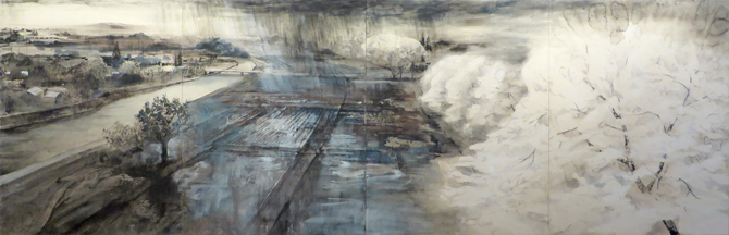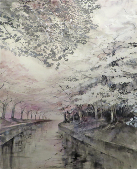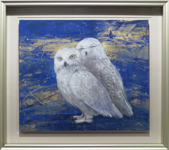 伴戸玲伊子展-常景- 2025 7/28 伴戸玲伊子展 -常景- 2021年10月11日(月)-16日(木) 春驟雨図 116.5×364㎝ Quiet Spring 100F 暁10F 星とフクロウ10F 春の日 8P 黄金の時 6P 潮風 4F 染川 4F 百合椿 4F 秋の公園 SM
