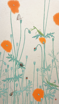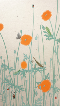 荒井経個展―草虫図― 2025 9/05 荒井 経 個展 ―草虫図― 2025年9月2日(火)- 12日(金) 草虫図 212×1092㎝(12枚組) 草虫図 T-1(左) 草虫図 T-2(右) 各 80×45㎝ 草虫図 TT-1 草虫図 TT-2 各 60×45㎝ 草虫図 (一) 草虫図 (二) 草虫図 (三) 草虫図 (四) 各 48×26.3㎝ 草虫図 (1) 草虫図 (2) 草虫図 (3) 各 42×24㎝